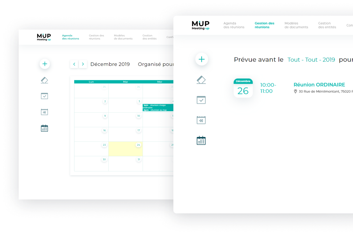 Pour avoir un aperçu rapide des réunions, vous pouvez utiliser la vue calendaire fournie par Meeting UP