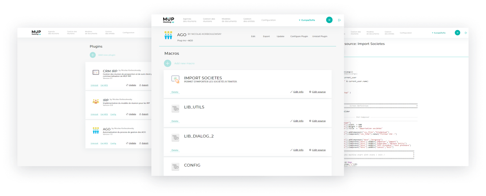 Avec Meeting UP, vous pouvez non seulement automatiser la gestion des réunions, mais vous pouvez également ajouter de nouvelles fonctionnalités avec VScrupt Plug-in Engine. Vous pouvez faire de ce logiciel votre propre solution et créer de la valeur par-dessus.
