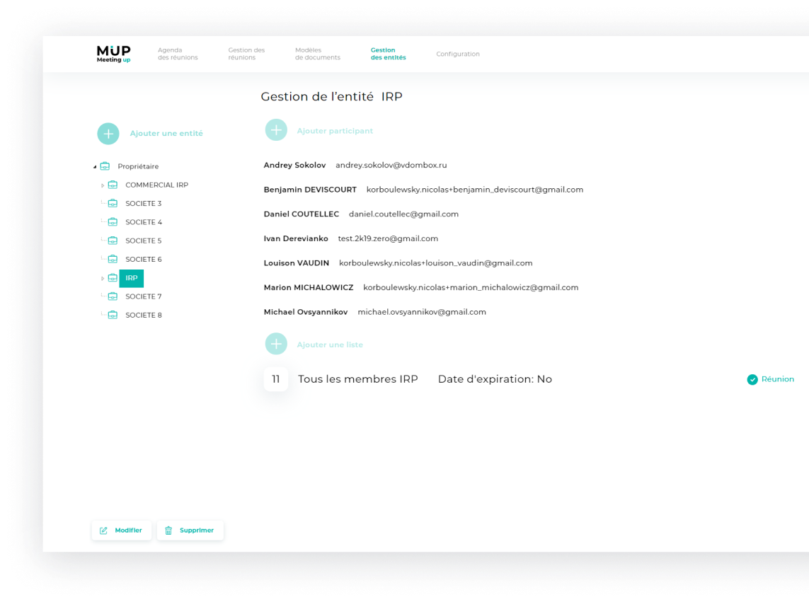 Vous pouvez créer une arborescence de l'organisation pour gérer la réunion de manière pratique, l'entité peut être des entreprises, des activités de service, etc.
